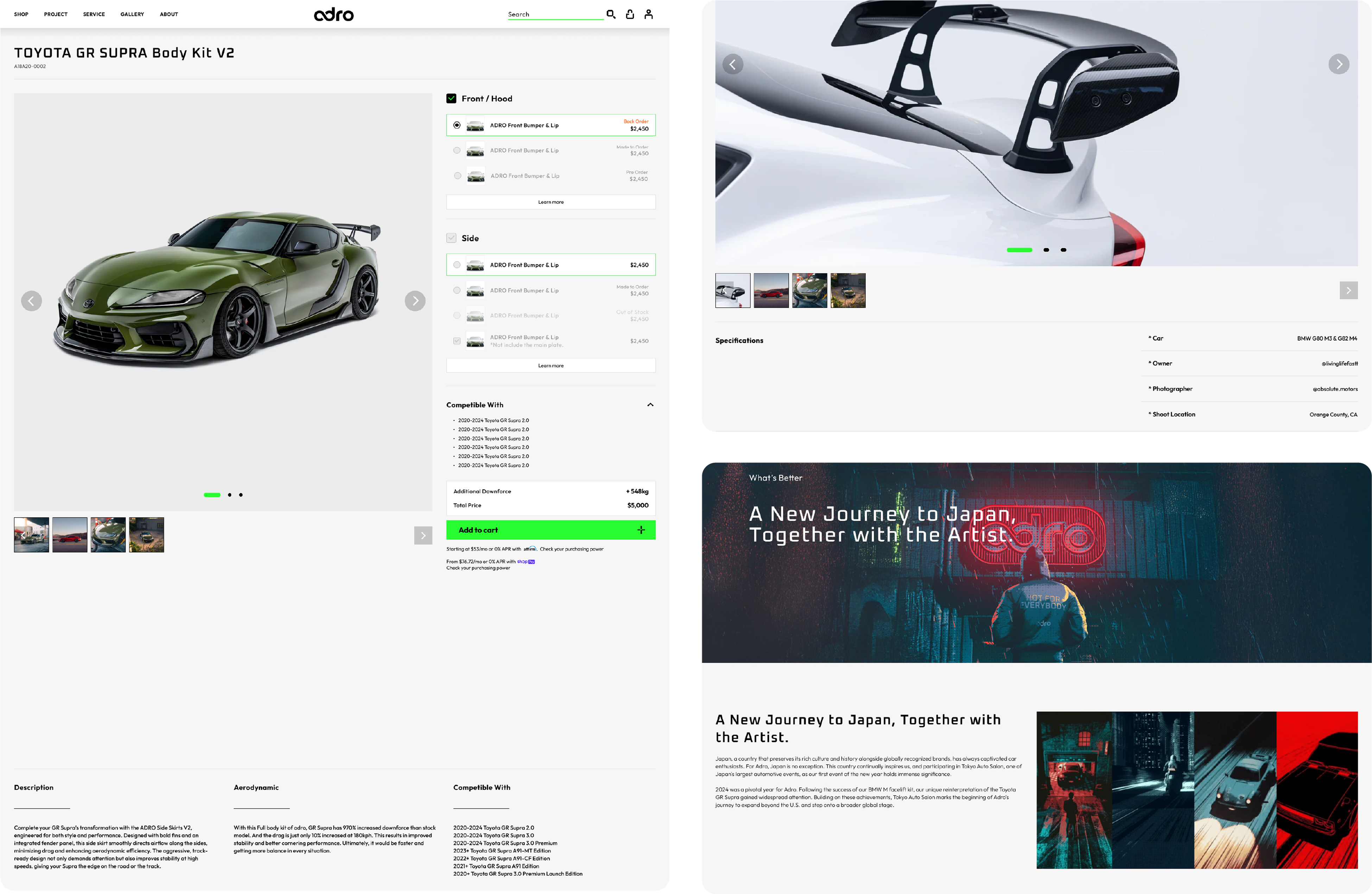 ADROは、単にパーツを手がけるブランドではありません。私たちは、パフォーマンスそのものを再定義しています。目に見えない気流を活かし、スピード、コントロール、安定性、そして効率性を高める、新しい時代のエアロダイナミクスブランドを築いています。精密な空力設計がもたらす違いを、ぜひ体感してください。